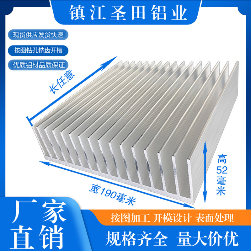 放熱シートアルミ材電子放熱器固体幅190mm * 高さ52mm放熱器アルミ形材アルミニウム合金