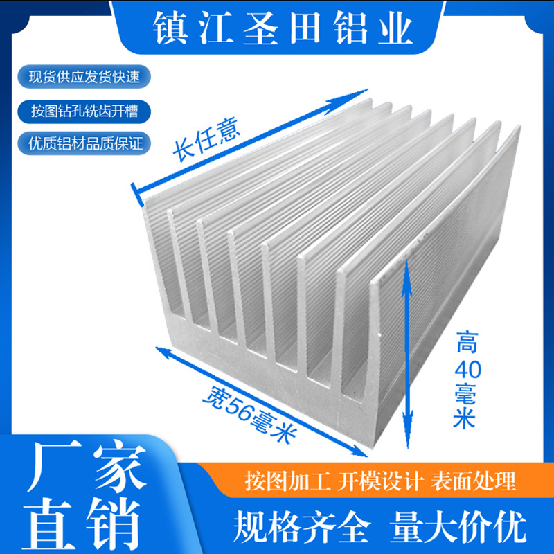 ヒートシンクアルミ形材電子電気機器オリジナル小電力型アルミ合金幅56ミリ高さ40ミリアルミ材