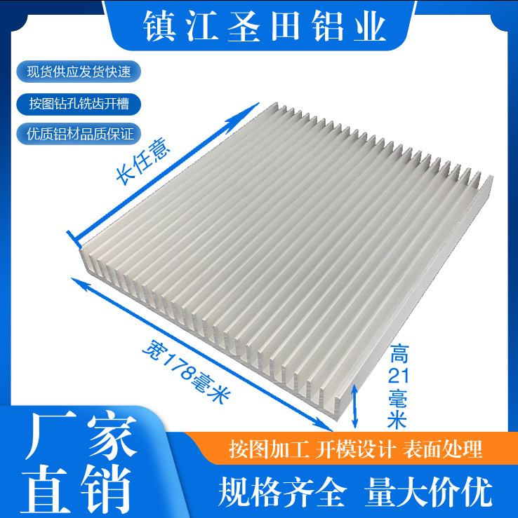 ヒートシンクアルミ形材アルミ合金歯付きチップ幅178mm * 高さ21mm放熱器アルミ合金材