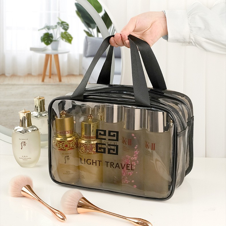 透明手提げポーチレディース大容量洗面バッグ高级感ポータブル化粧品収纳バッグ防水収纳袋