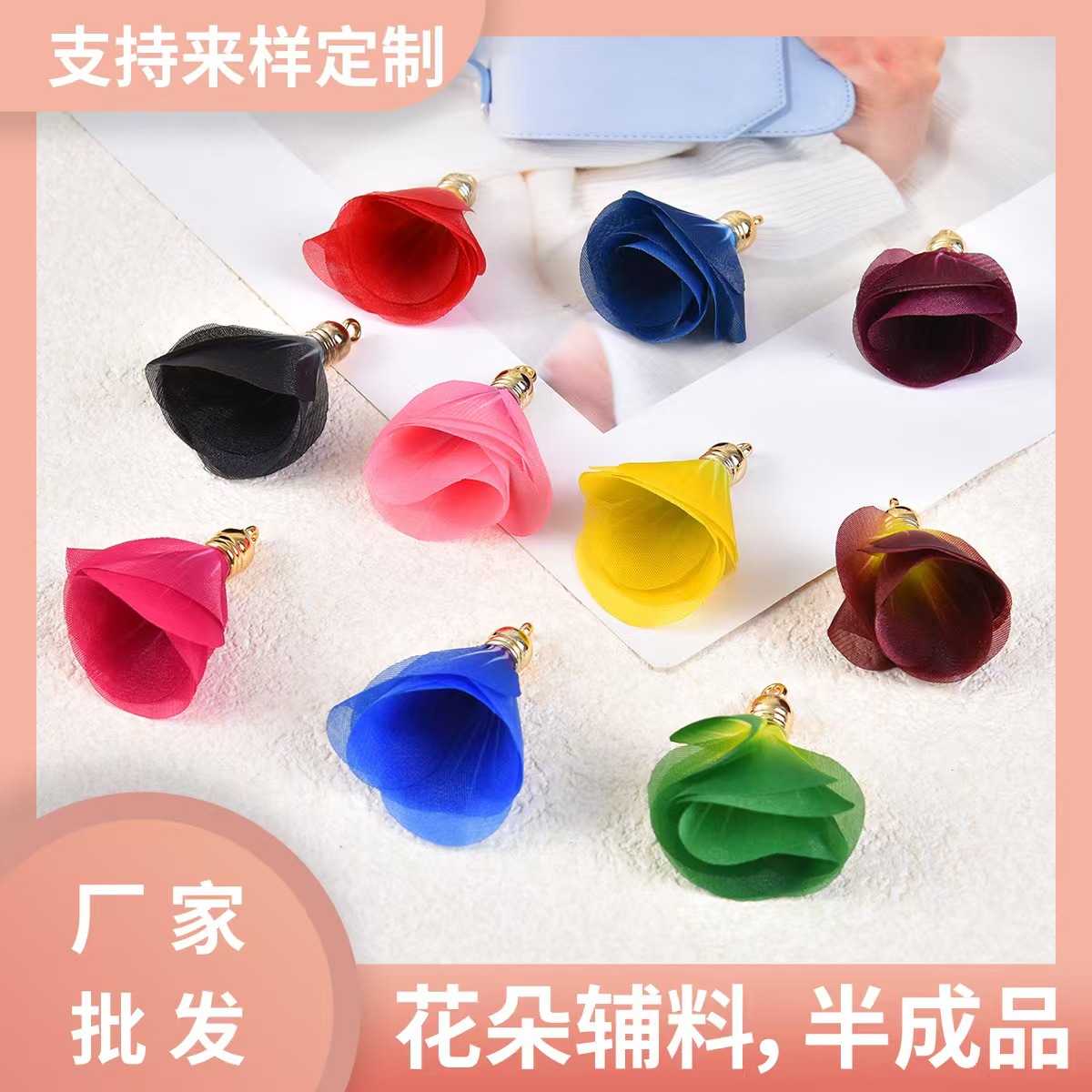 DIYアクセサリー卸売り新型ファッション多色布芸バラ花イヤリングアクセサリー材料