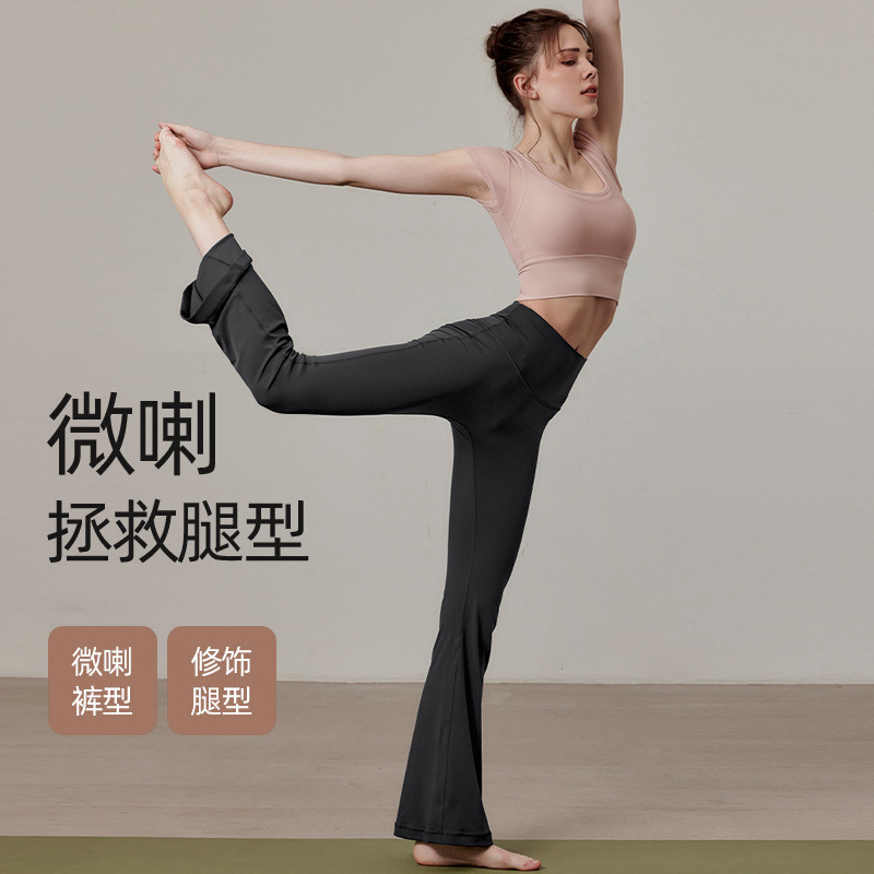 2025 新しいヨガウェアハイウエストヒップリフティングスポーツヨガパンツ女性のワイドレッグパンツアウターマイクロフレアパンツ越境電子商取引