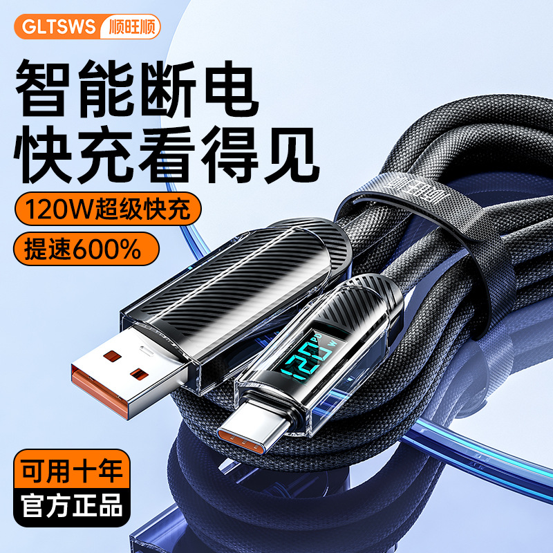 国境を越えた売れ筋 PD120W 超高速充電車スマート デジタル ディスプレイ Type-C データ ケーブル Apple 充電ケーブルに適しています