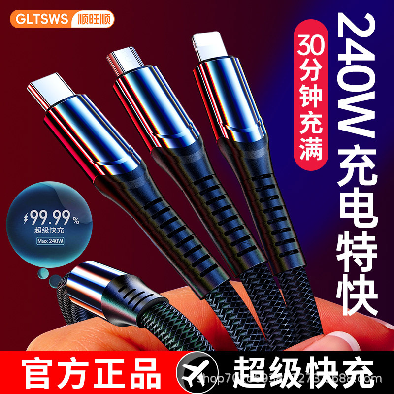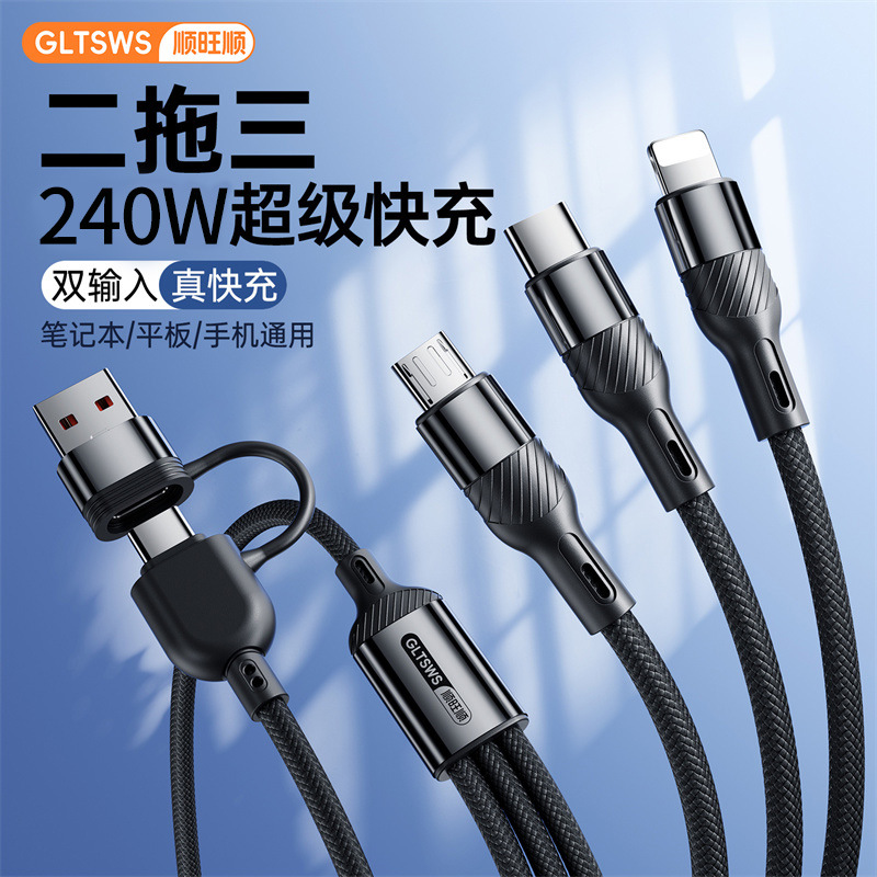 240W超速充データ線三合一セット一引き三充電線はリンゴ15華為粟を適用する