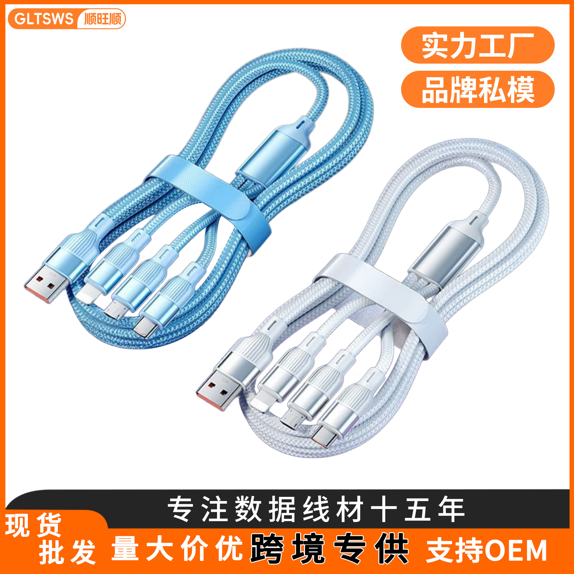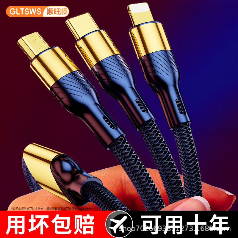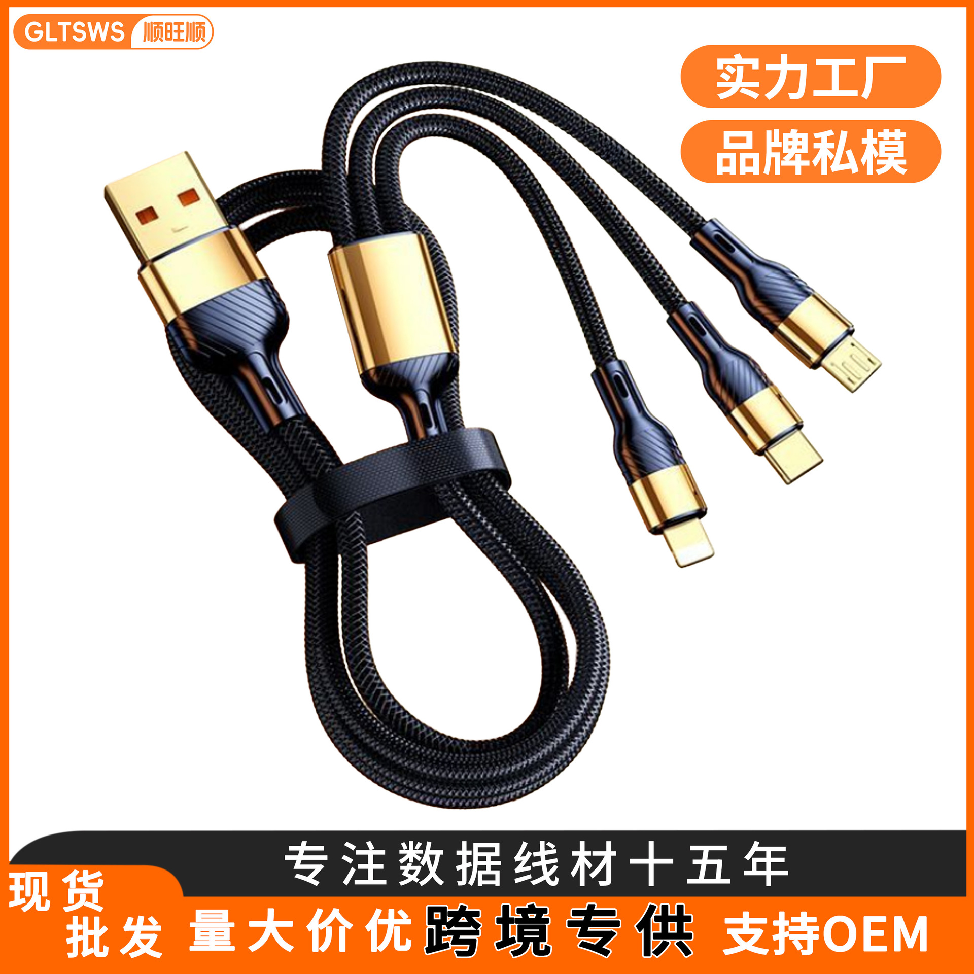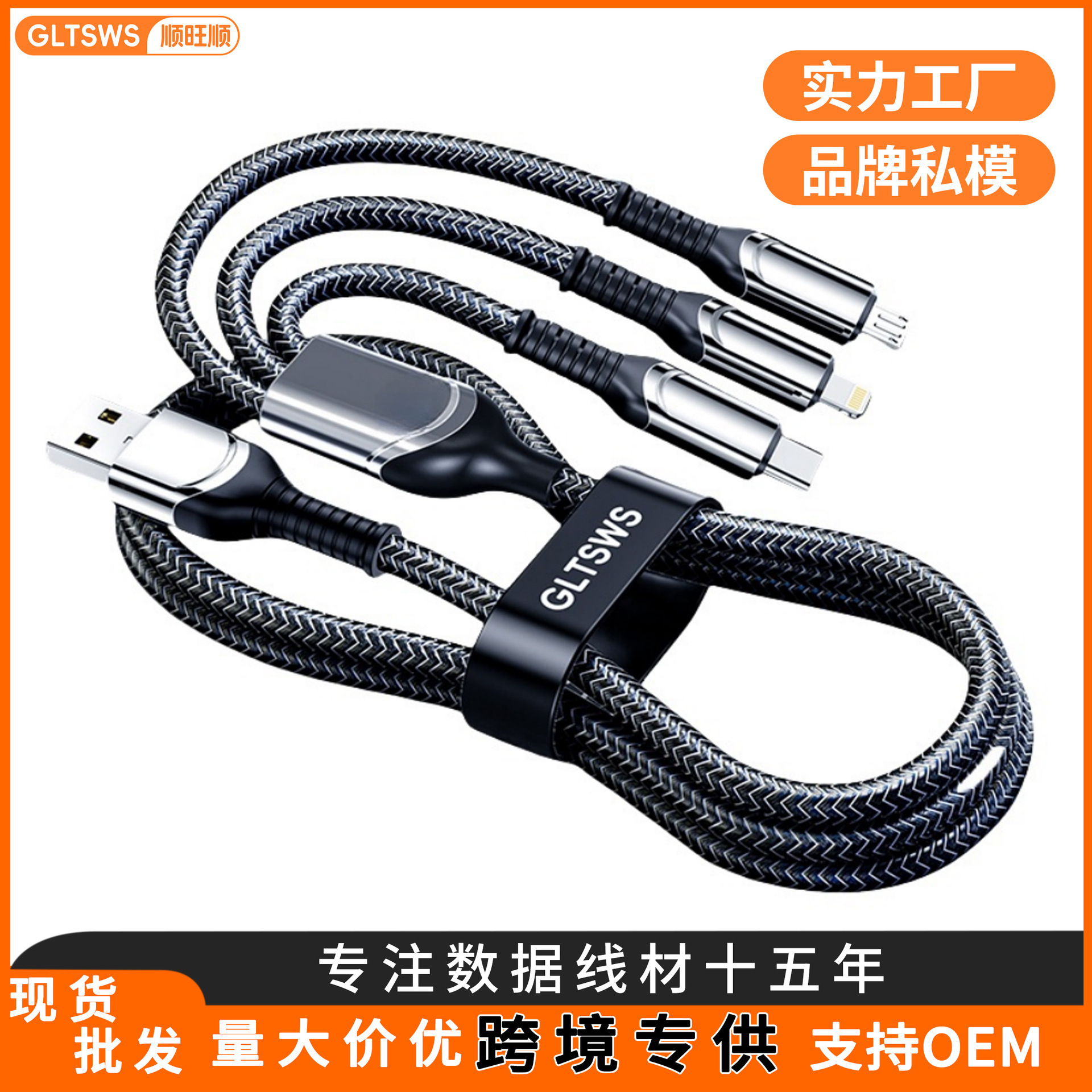 クロスボーダー 200 ワット車用データケーブル スリーインワン超高速充電完全互換ユニバーサル編組 1 対 3 充電ケーブル