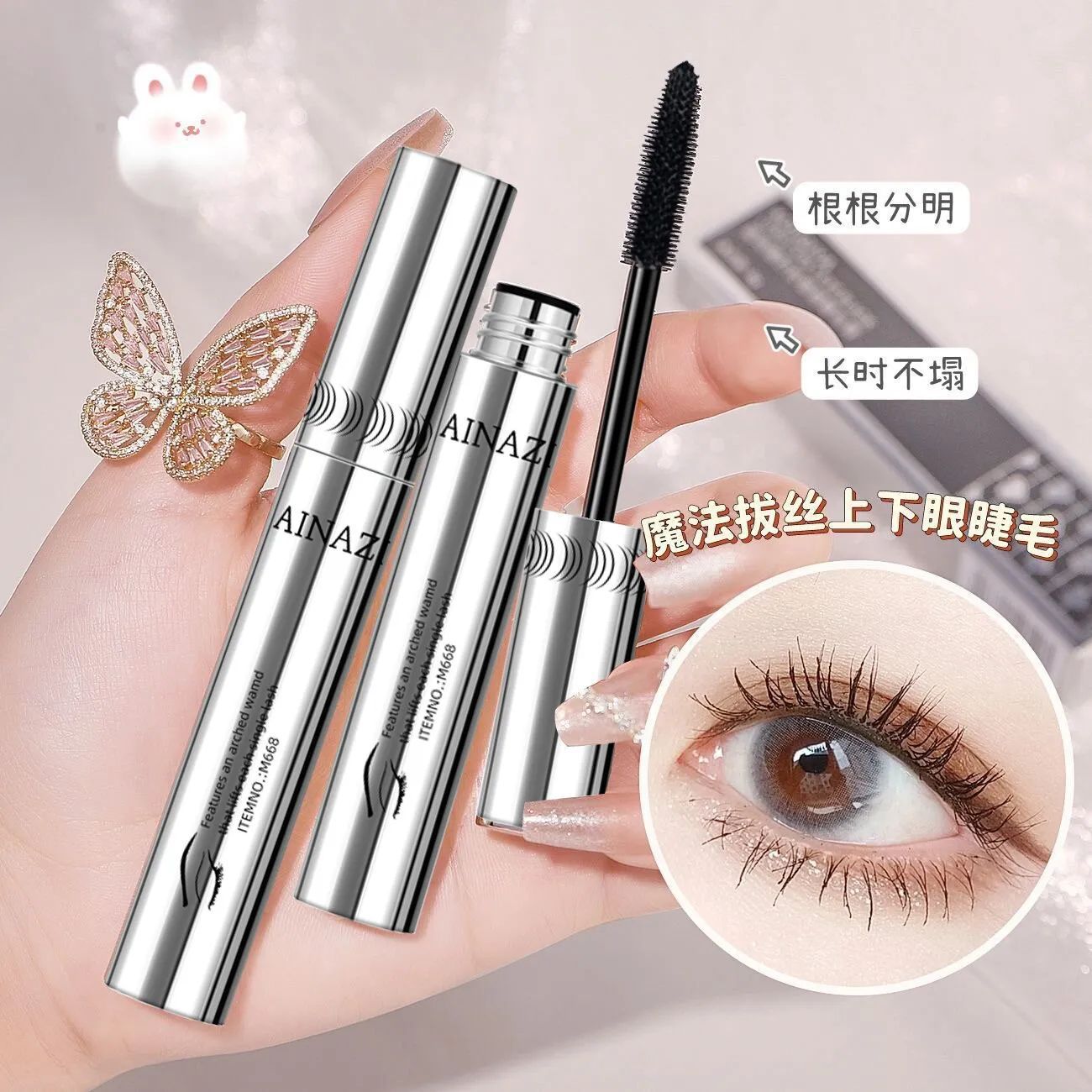 クロスボーダー美化粧アイマスカラ防水防染粗ブラシヘッド暗号化まつげカール長自然下地セット