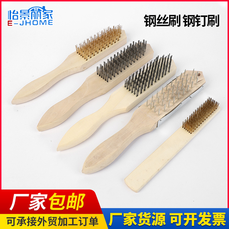 木柄ワイヤーブラシ研磨錆除去ワイヤーブラシ金属研磨洗浄ブラシ厚いステンレス魚鱗ブラシ鋼釘ブラシ
