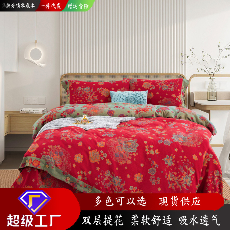 純綿二重糸四点セットa類棉四季シーツ布団カバーシンプル結婚ベッド用品裸寝卸売り