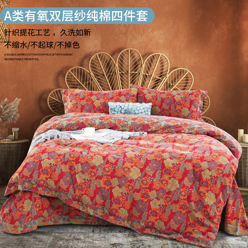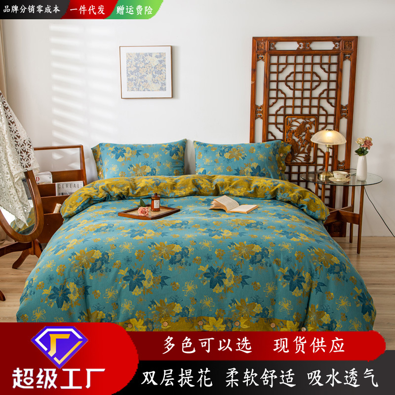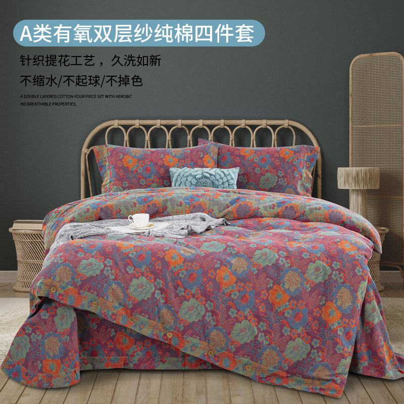 A類母子級綿二重糸四点セット純綿ジャカードシーツカバーセット