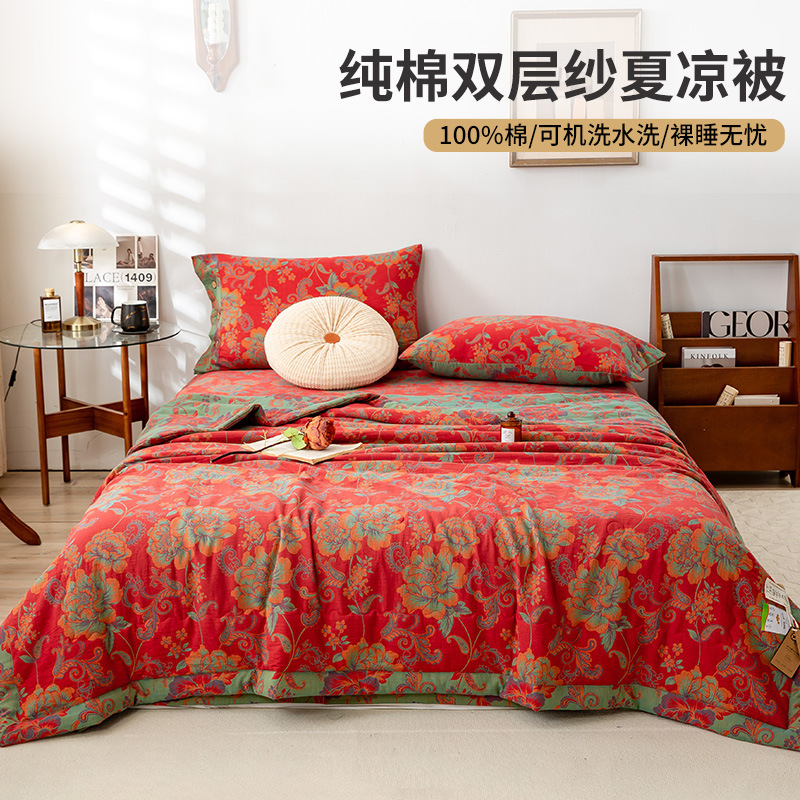 二重の紗夏涼は純綿の純綿のエアコンで薄い布団に洗濯できます。