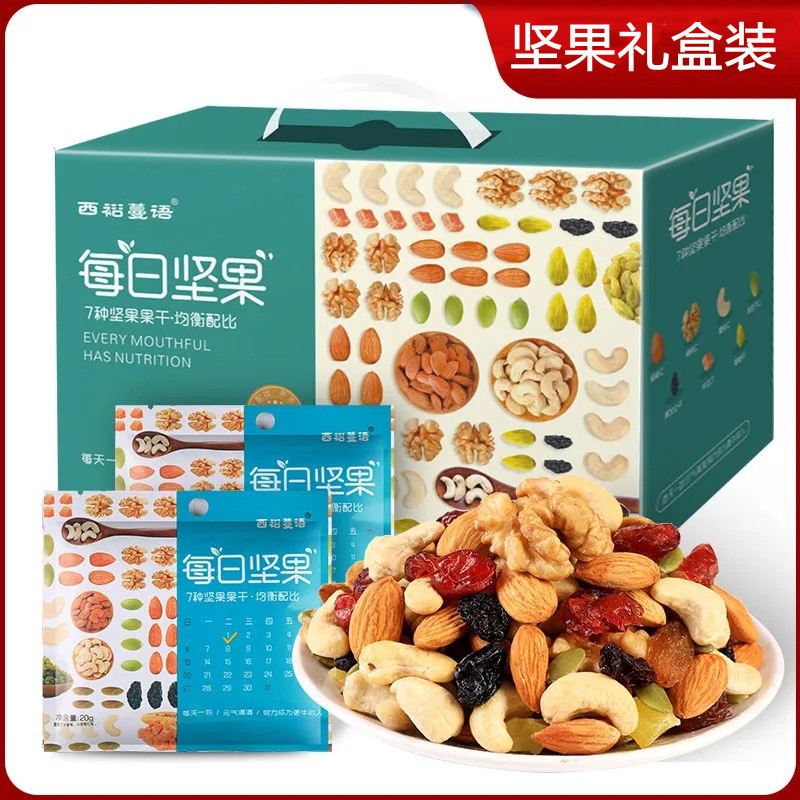 毎日ナッツのギフトバッグはナッツの子供用のドライナッツのお菓子を混ぜてセットします。