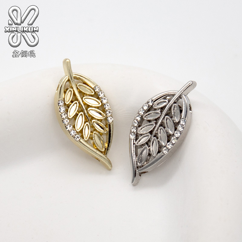 軽い豪華な葉の形の金属ボタンの服の手作りの補助材料のファッションの小さいダイヤモンドの手の縫い目はdiyのアクセサリの部品の卸売りを掛けます。