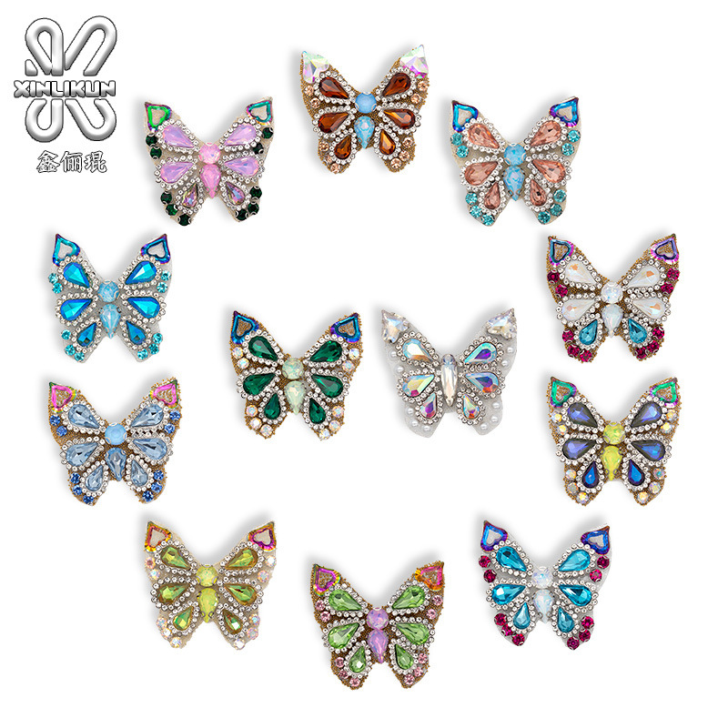 カラーの水晶の蝶のアイロンと花の服装の靴の帽子の手の補助材料のアイロンとダイヤモンドのホットメルトのダイヤモンドのdiyのアクセサリの部品