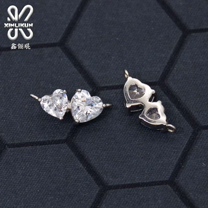 ファッションダブルハートジルコンペンダント高级感レディースブレスレットネックレスペンダントアクセサリーダブル穴リンクペンダント卸売