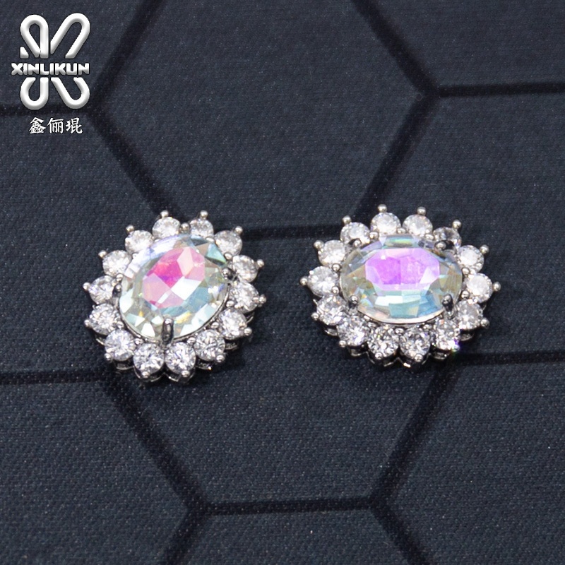 ファッションABカラー楕円形ジルコンは高級合金の手縫いボタンを掛けます。