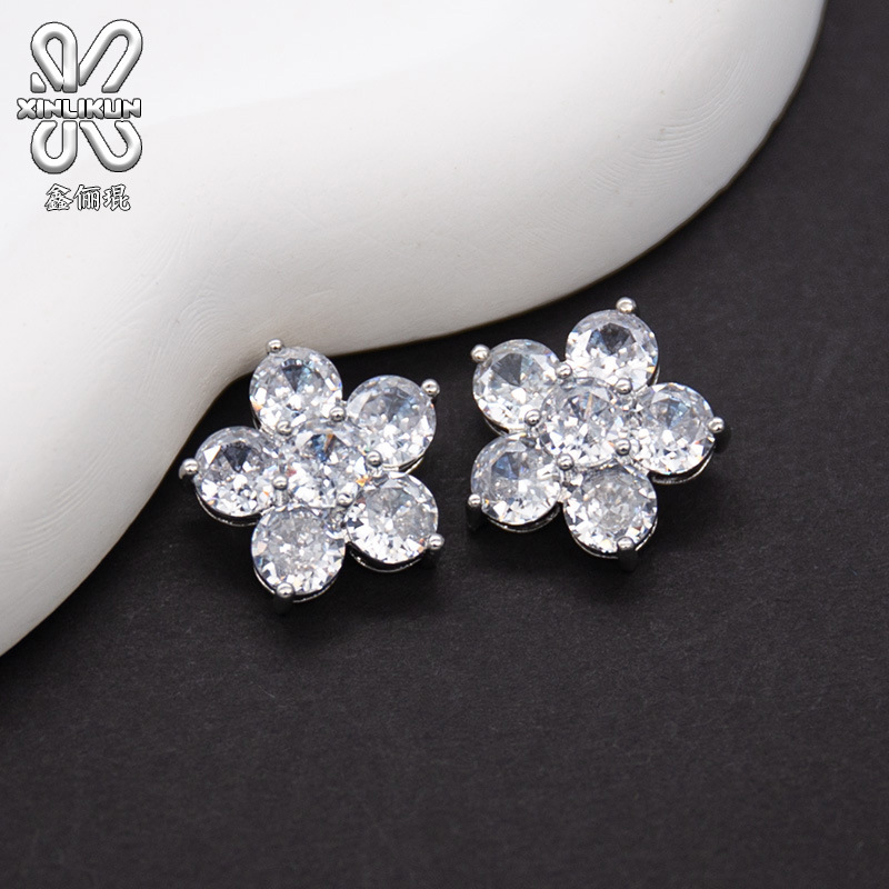 小香風三弁花超フラッシュジルコンボタン服装ドレス手縫いカフスボタン金属ボタンdiyアクセサリー部品