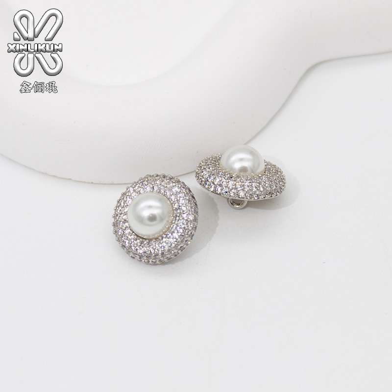 韓風螺旋形ジルコンのボタンに真珠のボタンを入れたウェディングドレスの縫い目はdiyアクセサリーの部品を掛けて卸売りします。