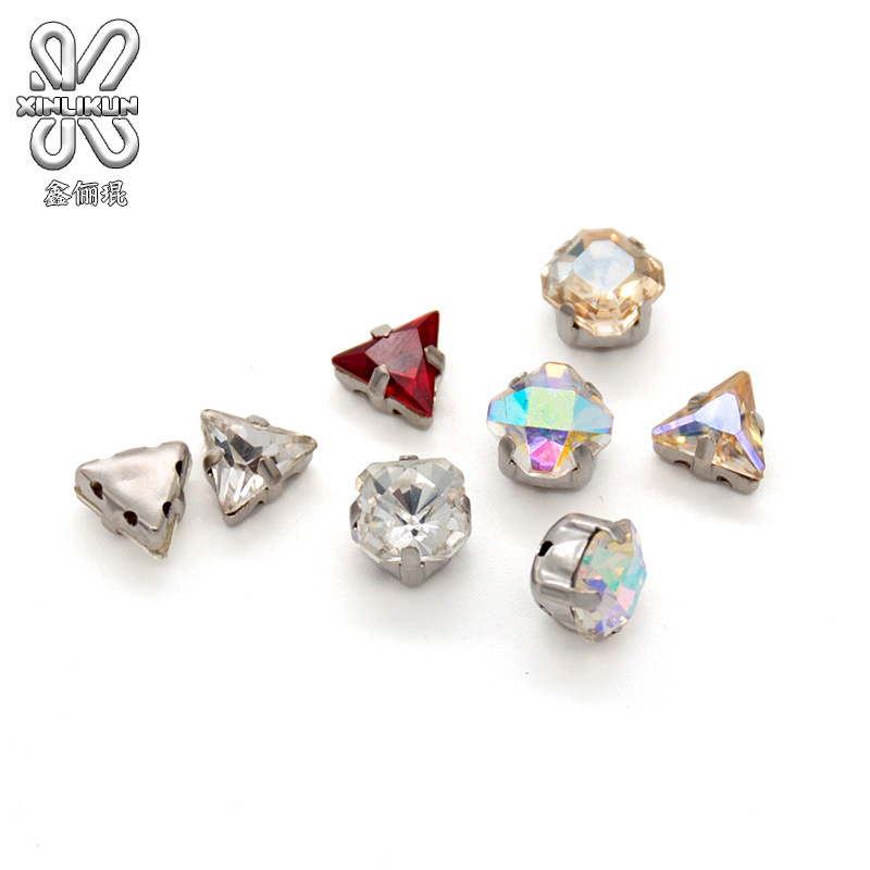 热销款金底镂空爪托水晶爪钻婚纱服装饰品带孔手缝爪钻彩钻批发