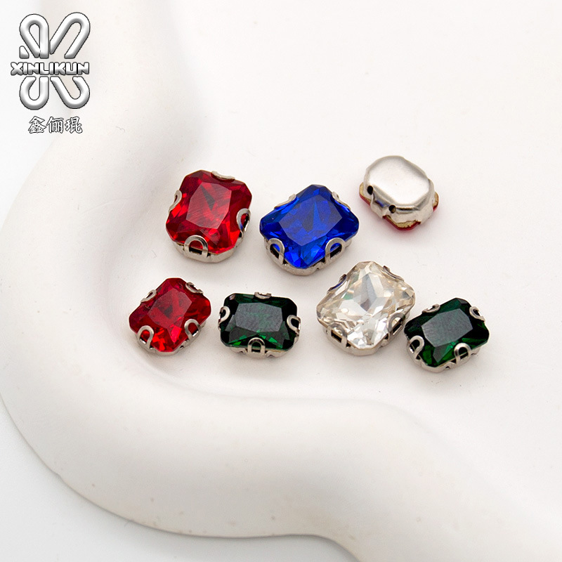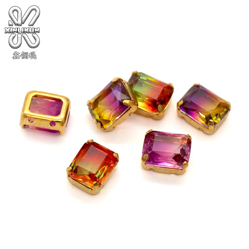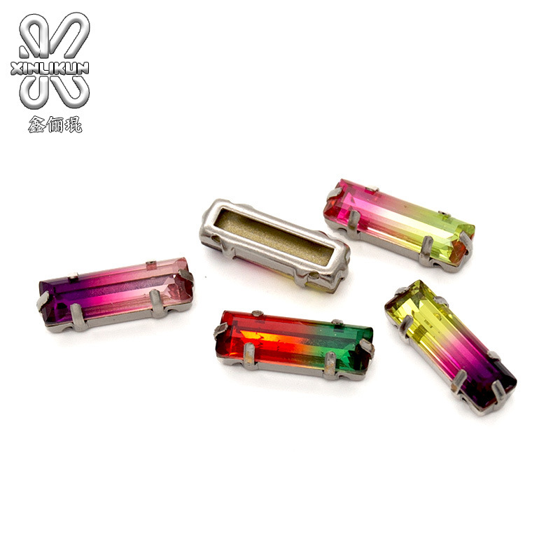 グラデーションカラー長条形水晶ドリル銀メッキ爪托ガラスドリル服装コートアクセサリーdiyアクセサリー部品卸売り