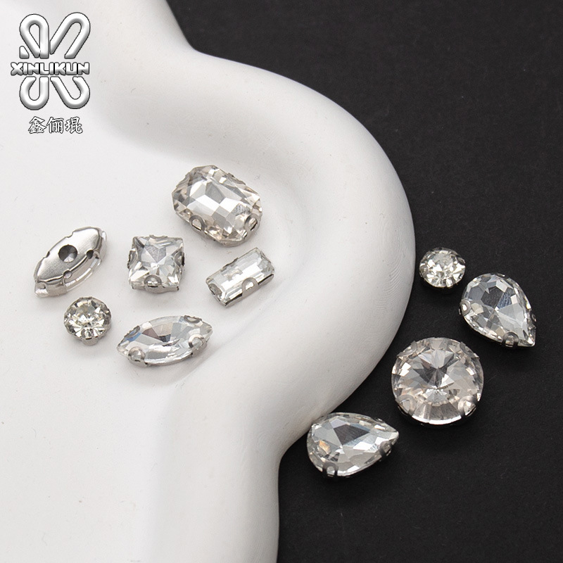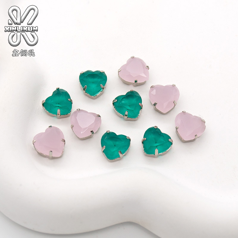 新型銅底銀メッキハート型水晶爪ドリル服装靴帽手縫い材料水ドリルdiyアクセサリーメーカー卸売り