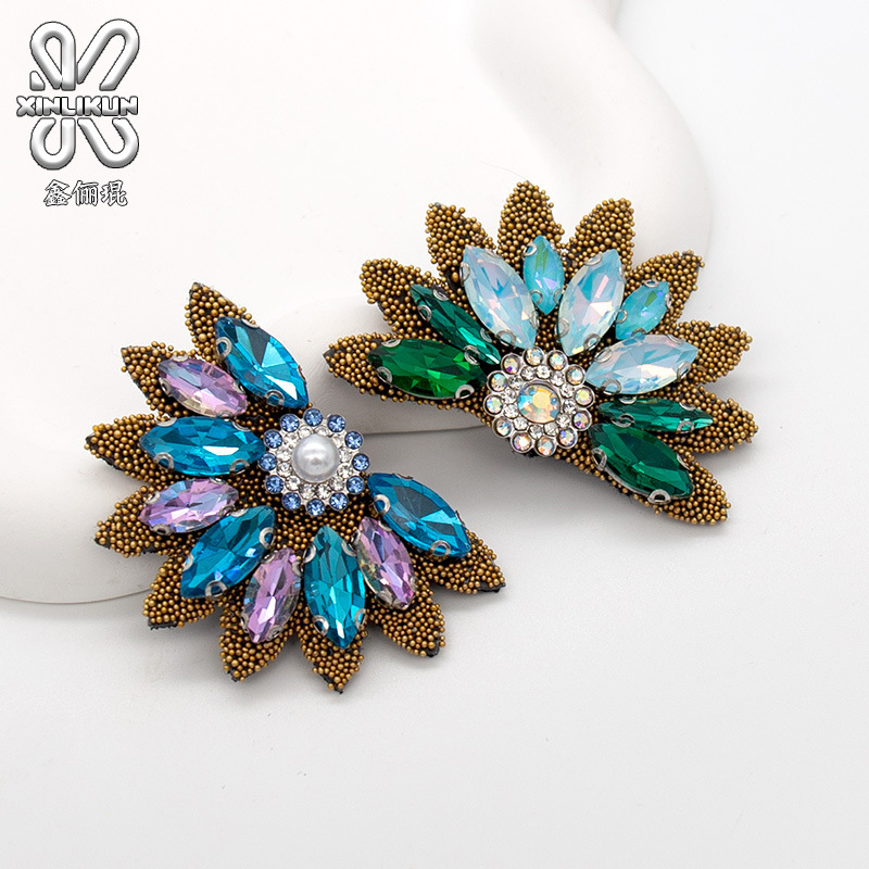 新しい半円の花のスエードの手縫いのドリルの服のオーバーの手作りの材料はdiyのアクセサリーの部品を飾って卸売りします。