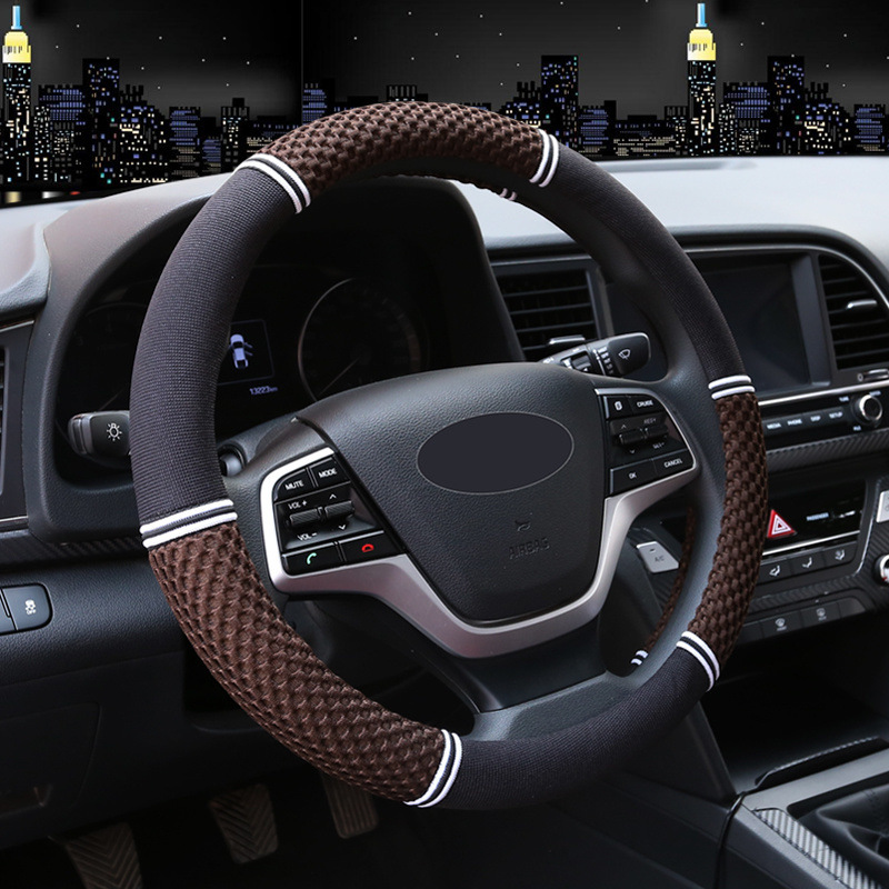 新しい車のステアリングホイールカバー通気性、滑り止め、耐摩耗性、吸汗性アイスシルクリネンユニバーサル四季ステアリングホイールカバー