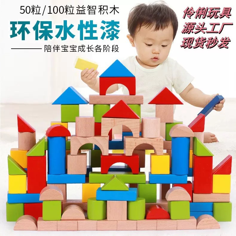 木製 100 カラフルな大粒子無垢材ビルディングブロック建物啓発赤ちゃん 3 男の子 6 女の子教育ビルディングブロックおもちゃ