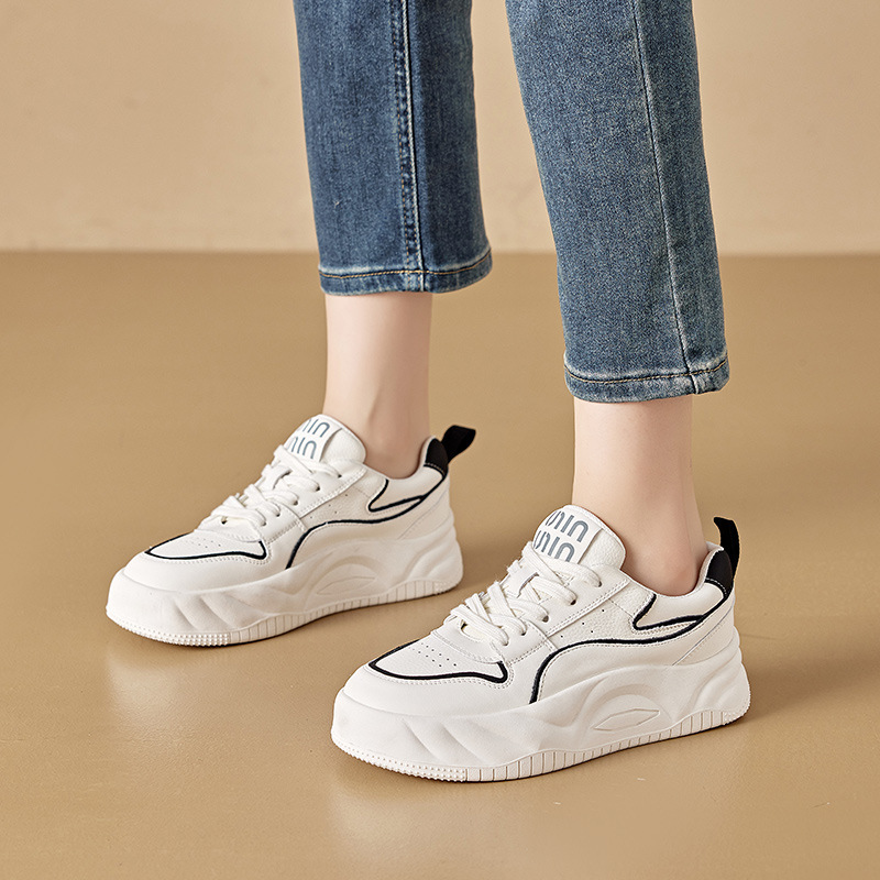 2025初春の新商品の学生の白い靴の女性の厚い底の韓国版の小さいコードの厚い底のカジュアルな靴の女性のお父さんの靴