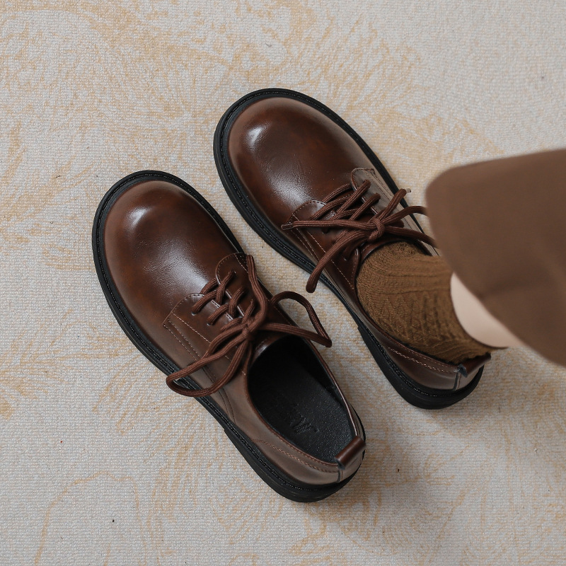 柔らかい牛革の厚い底の小さい靴の仕事の女性靴2025春秋の新型のストラップjkの楽福の靴の茶色の復古の靴