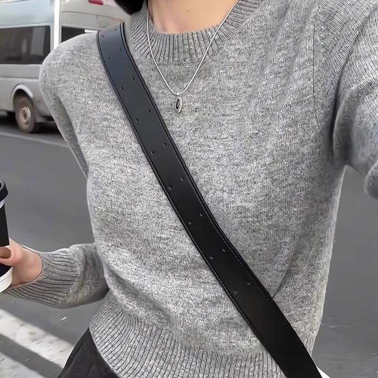 欧米の灰色の短いセーターの底のシャツの女性の2025新型の秋冬感の正肩の中はニットの上着を掛けます。