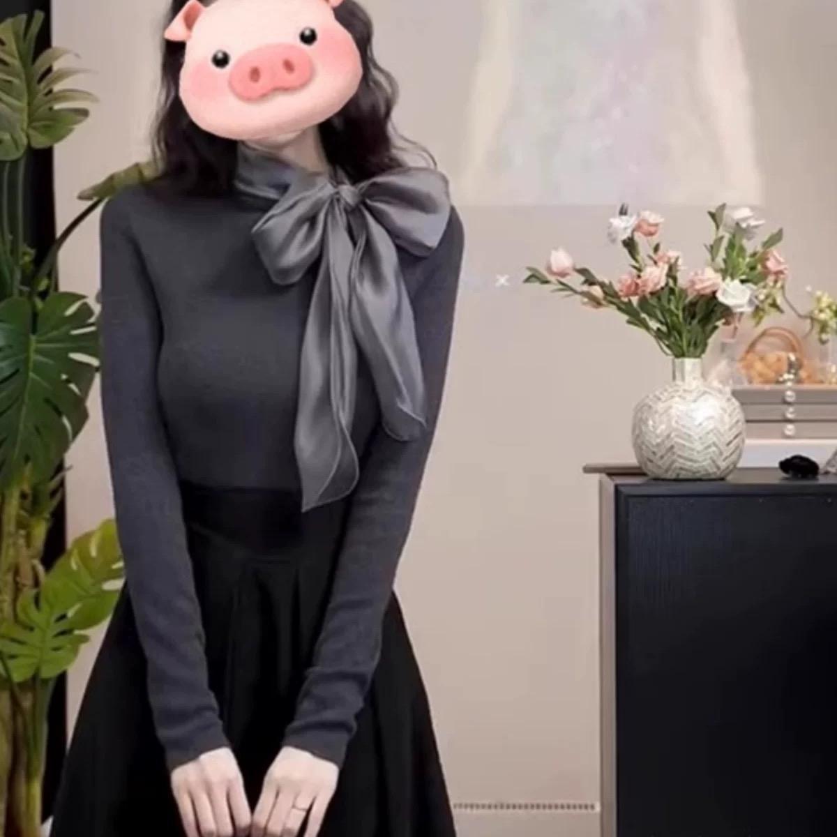 フランスの長袖のリボンの蝶結びのニットの底のシャツの女性の朝の春の新型の修身はやせています。