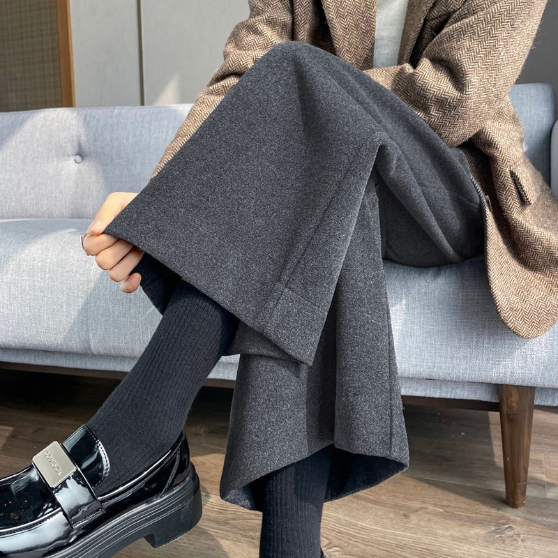 灰色の毛はまっすぐな筒の広腿のズボンの子供の2025新型の秋冬のゆったりしている小さい背の高い腰のカジュアルな8分のズボンです。