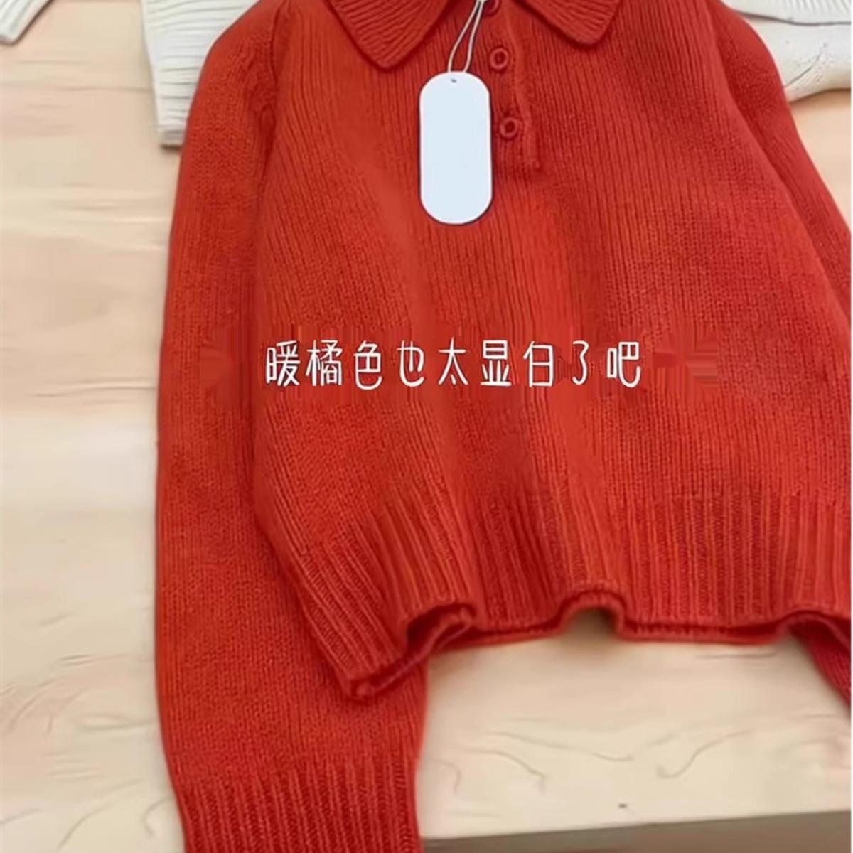 欧品婦人服オレンジ色の襟付きニットセーター早春怠惰な長袖プルオーバーpolo上着