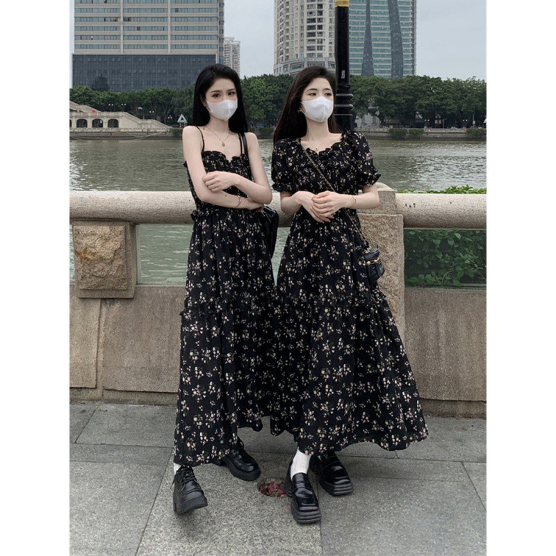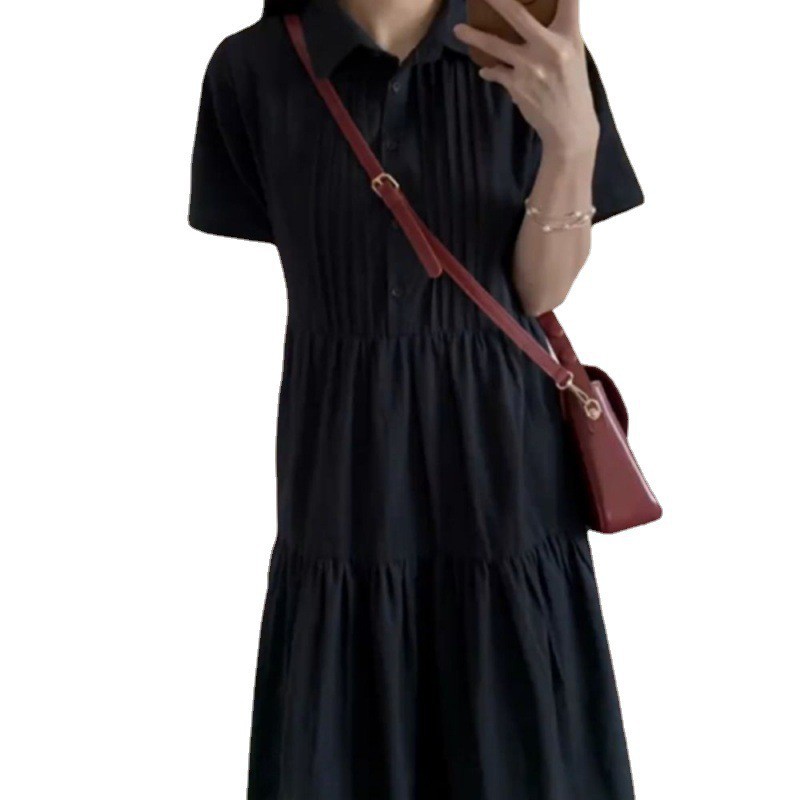 ワンピース黒フランスレトロ甘いオルガンタック襟女性夏半袖ウエスト痩せ初恋スカートホット