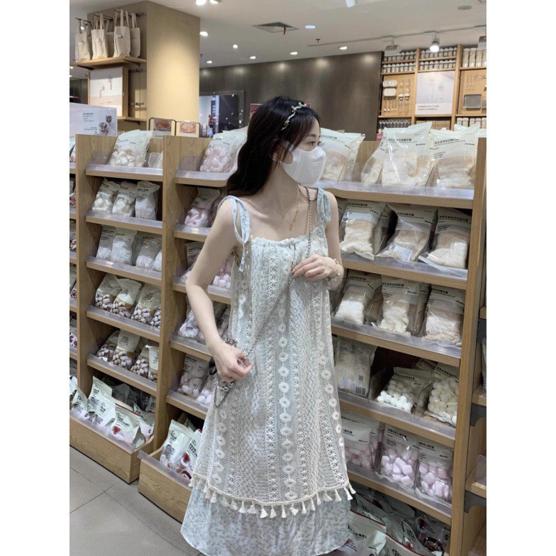 アンドロメダのスカートの超仙のワンピースの春夏の新型の学生の韓国版の高腰の小さい背はやせているネットの紗が肩のスカートをつなぎ合わせます。