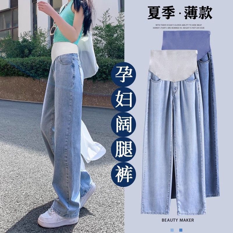 妊婦のズボンの女性の春の初春の薄い金の外はデニムの広い足のズボンの夏服を着て妊娠の初期に大きいサイズのストレートを打ちます。