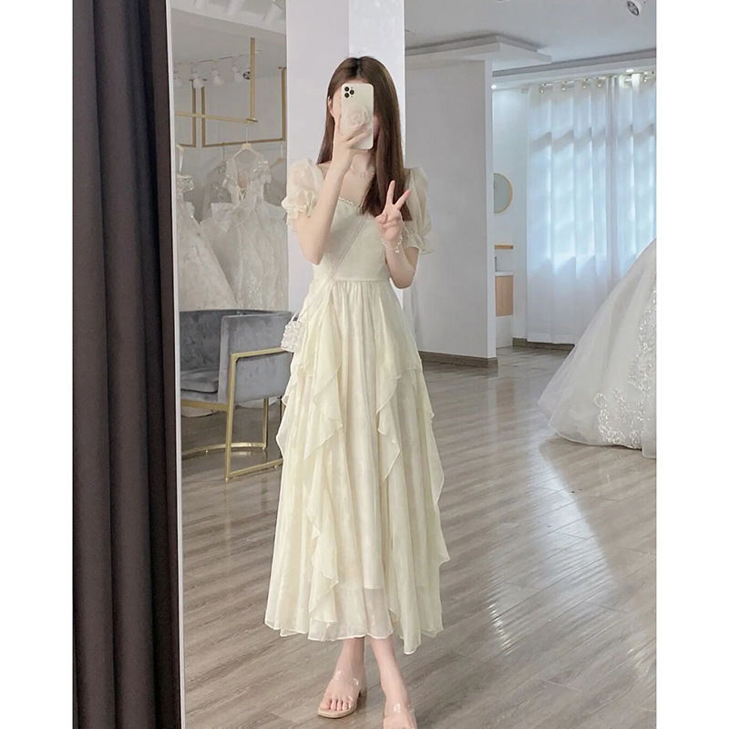 新しいフランスのアンドロメダの優しい風の長いスカートの高級感の小さい大衆の設計の気質の白いワンピースのスカートの夏