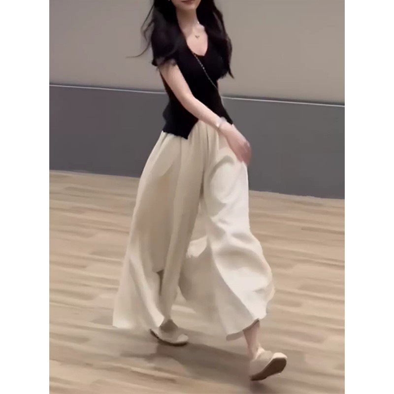 春夏の新型ファッションセット女性韓国版気質修身着痩せ上着高腰広脚ズボンスカート2点セット