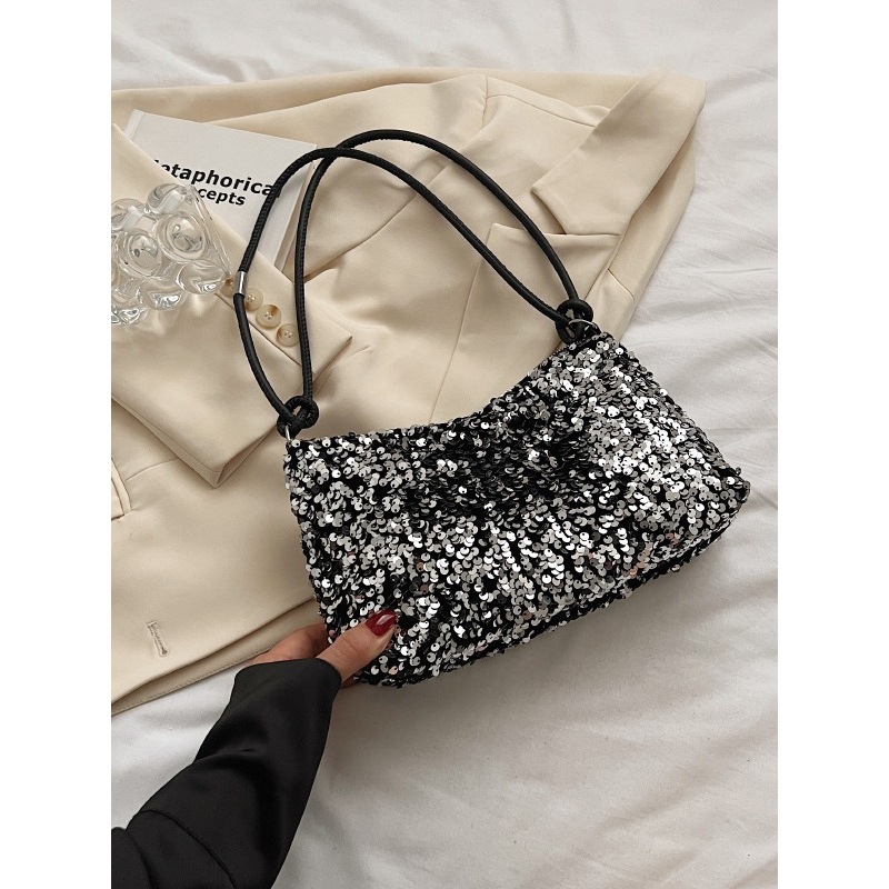 2025夏の新型の質感のカジュアルな洋風のスパンコールのリュックサックの個性のシンプルな斜め掛けの大容量のフランスの棒の包み