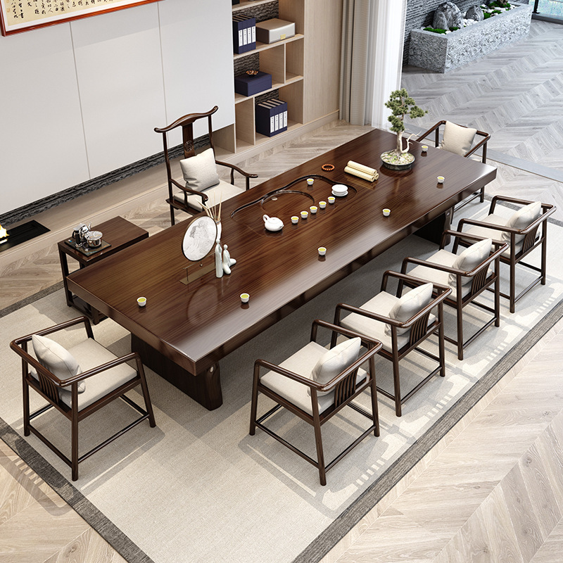 新しい中国式の茶卓のフルセットの椅子は木の茶台の工夫を組み合わせてお茶のテーブルの事務室の家庭用の大きい板の茶卓を浸します。