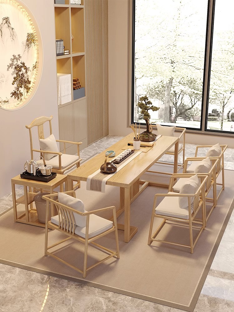 実木茶テーブルと椅子の組み合わせ客間新中国式禅意原木色工夫茶台オフィス家庭用お茶テーブル
