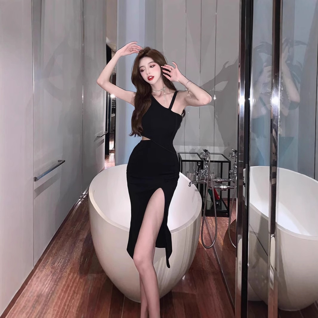 ヘプバーンスタイルドレスドレスハイエンドデザインロングスリットサスペンダースカートホットガール夏2025新しいセクシー