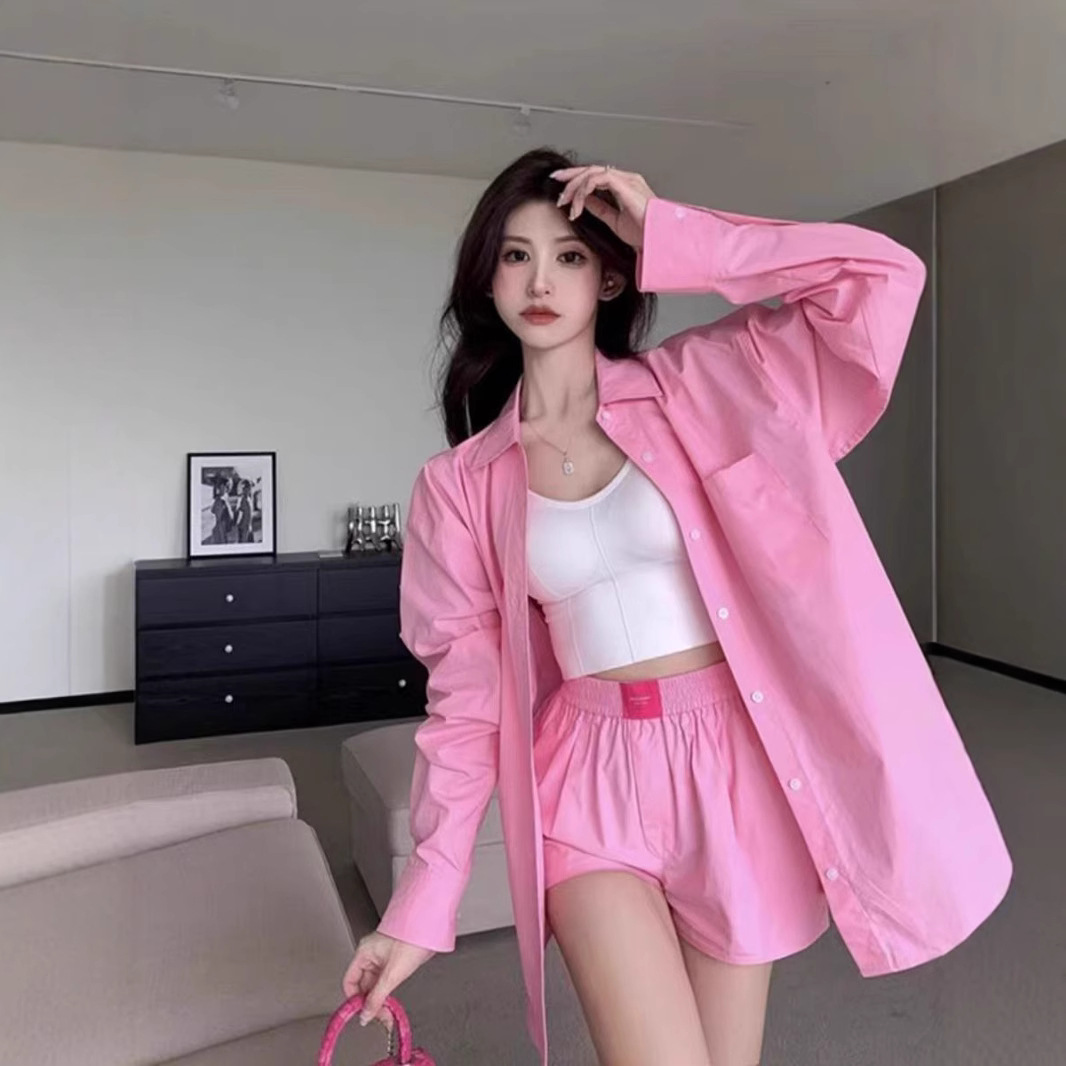 アメリカのカジュアルな日焼け止め服セット女性ファッションスポーツ風の襟をめくってひもを引きます。