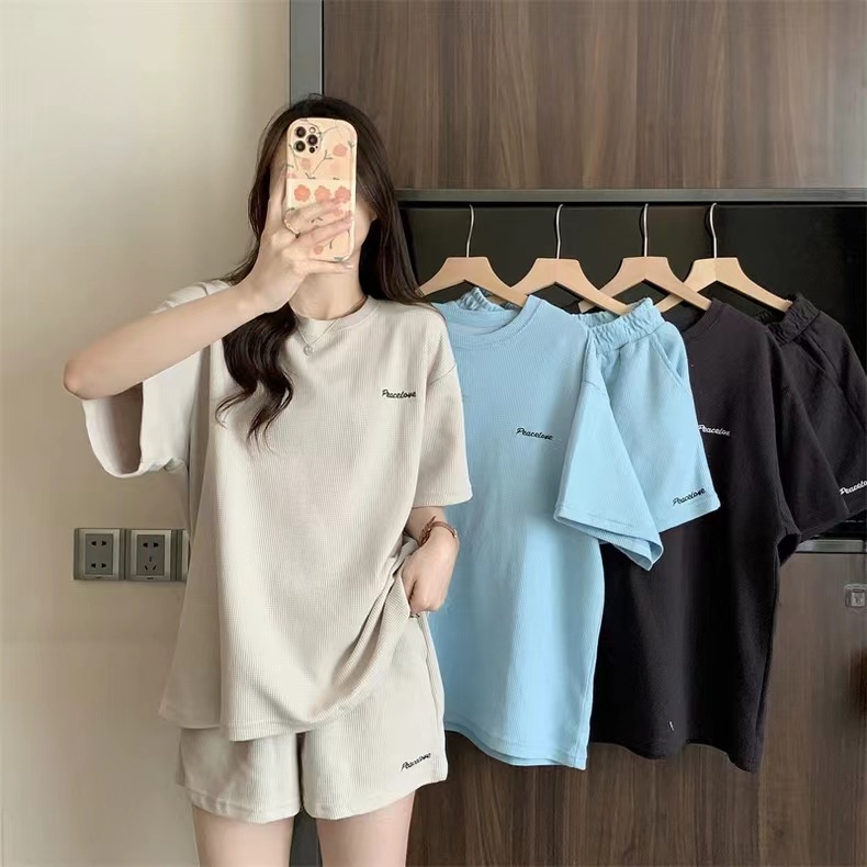 ワッフルスポーツショーツ半袖Tシャツ2点セットレディース夏新作万能ゆったり痩身カジュアルファッションスーツ