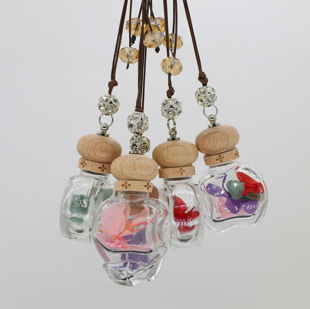 創意永生真花自動車車載香水瓶空瓶ストラップアップルガラス瓶に香水8mlを入れることができます。