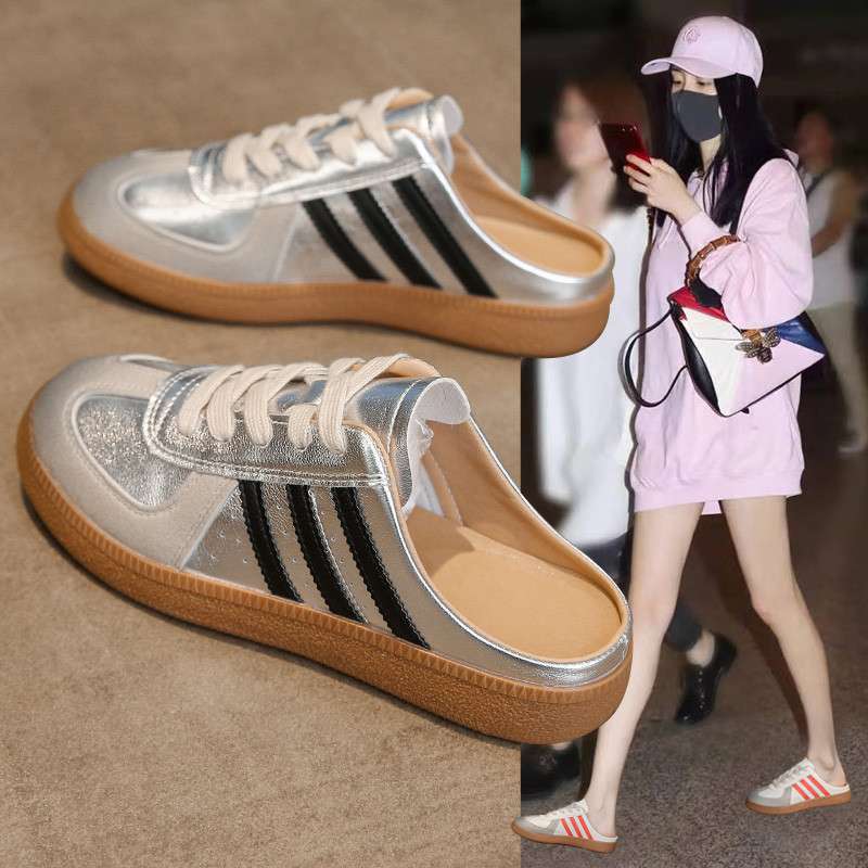 女性の夏のアウターウェアに人気のハーフスリッパ 2025 新しいヒールレスシルバーつま先スリッパ女性用スリッポンハーフスリッパ