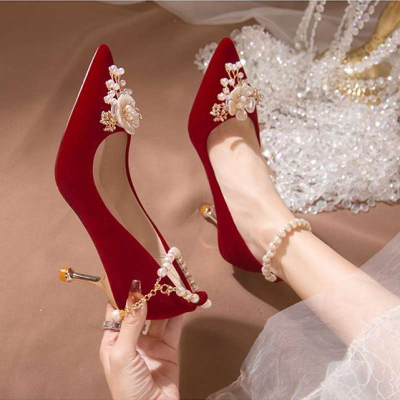 Xiuhe 靴結婚式の靴女性 2019 新しい赤いハイヒールの靴女性のスティレット結婚式秀和服ブライダルシューズ乾杯