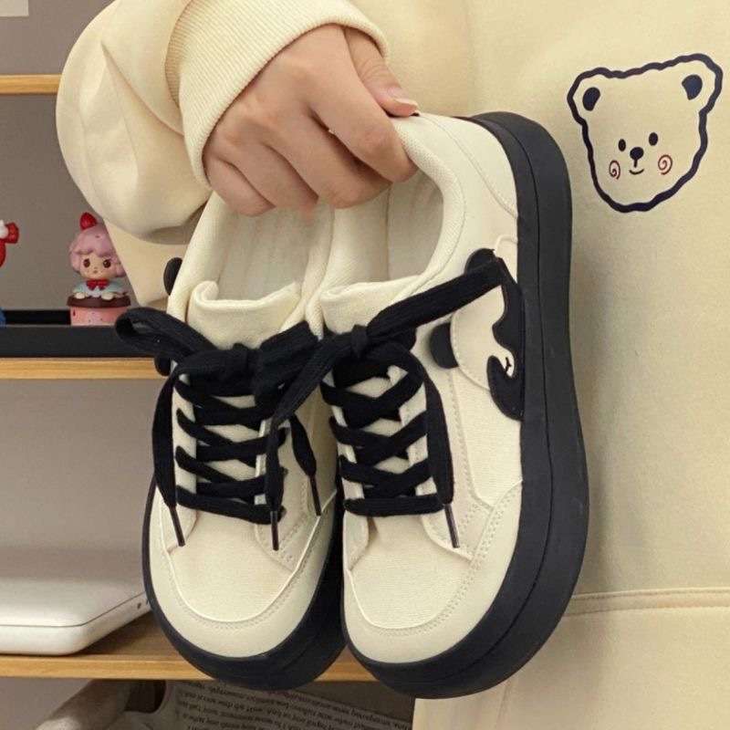 ニッチデザインオリジナル黒と白のパンダキャンバスシューズ女性のためのオルチャン多用途レトロスニーカー香港スタイルの白い靴女性のための