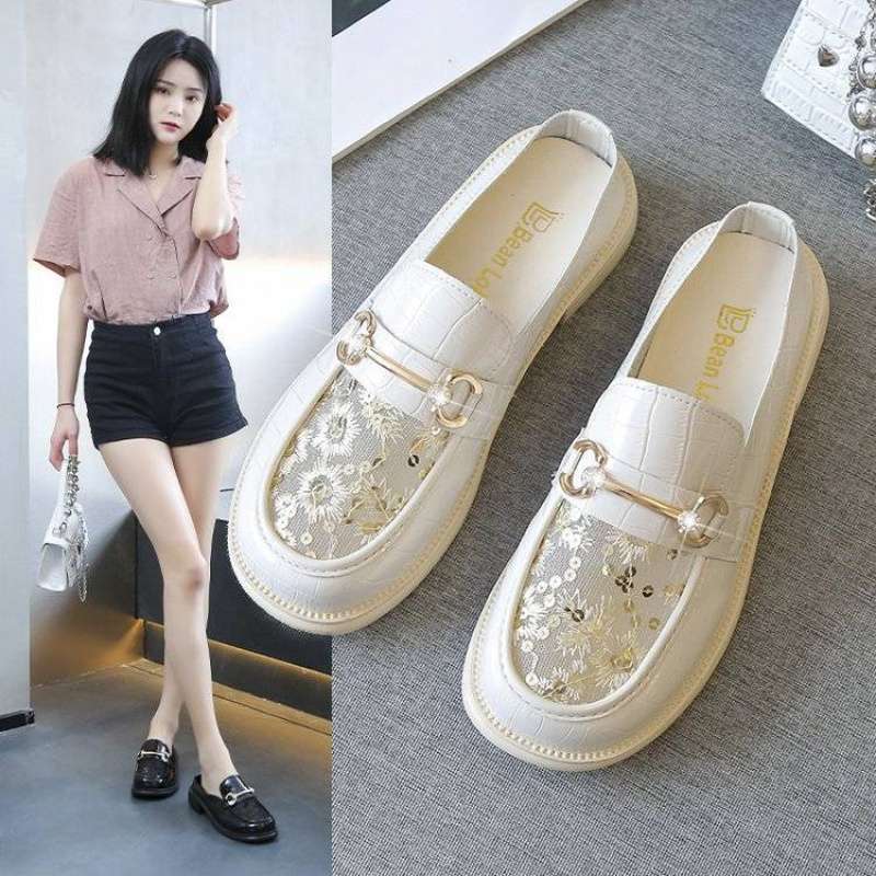 女性用ローファー 2025 春夏新作フラットシューズ英国スタイルの小さな革靴女性用スリッポンビーニーシューズ