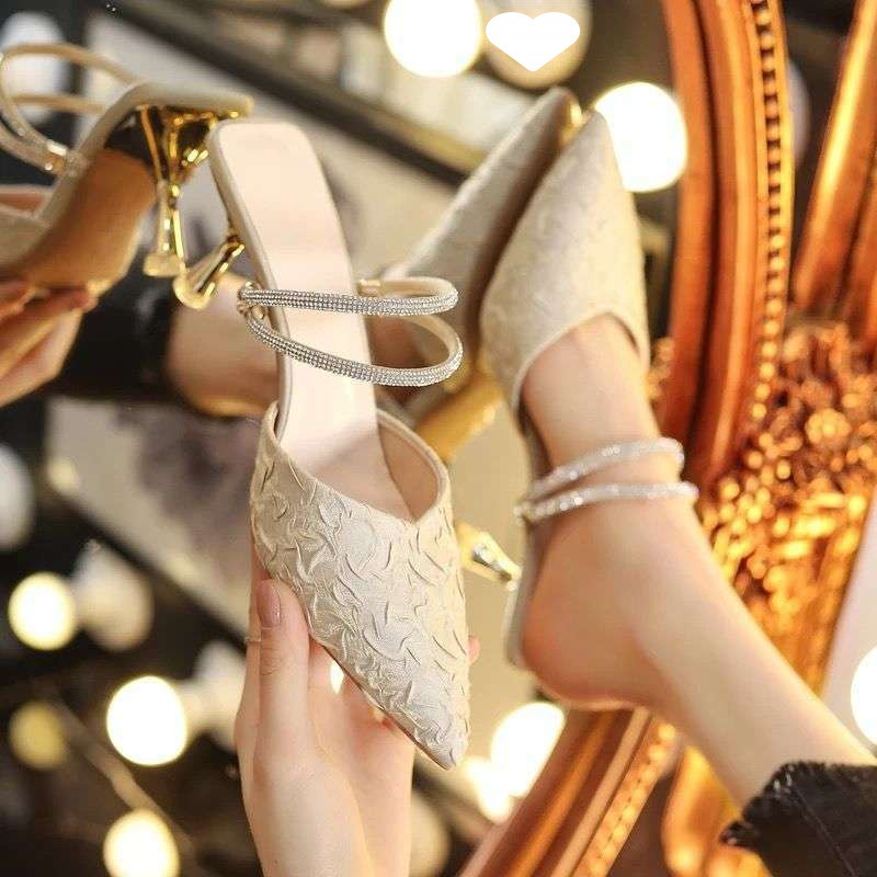 セミスリップハイヒール、2025年新作ラインストーンツーウェアサンダル、フェアリースタイルスリッパ、レディースサマーアウターウェア、イントレンド